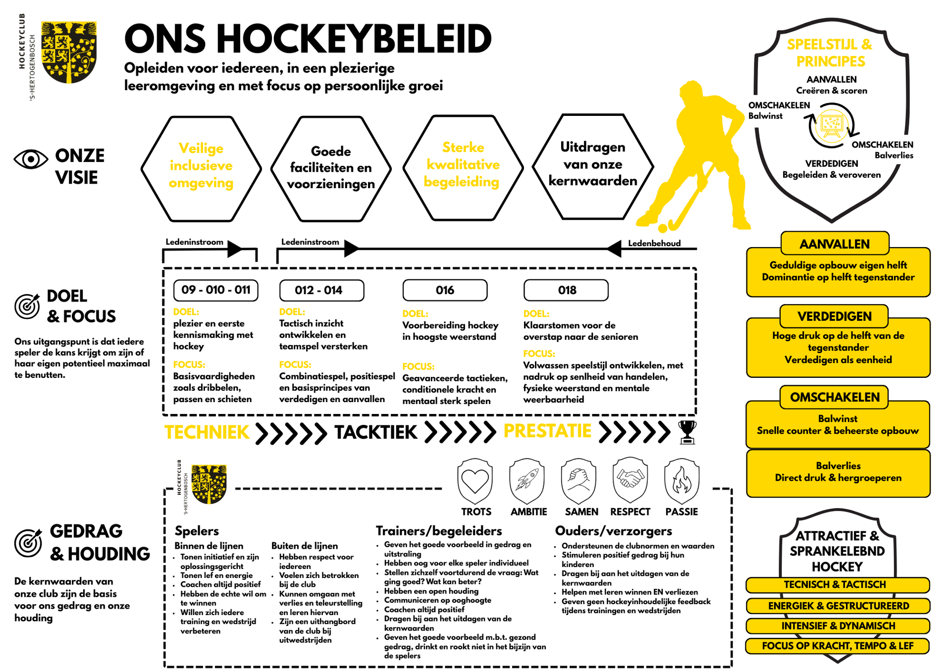 Wij inspireren en motiveren jonge hockeyers van alle niveaus om hun volledige potentieel te bereiken. Met onze hoogwaardige trainingen, afgestemd op verschillende leeftijdsgroepen, focussen we op technische, tactische, fysieke en persoonlijke groei. We hebben een langetermijnvisie, waardoor we spelers kunnen helpen zich blijvend te ontwikkelen.