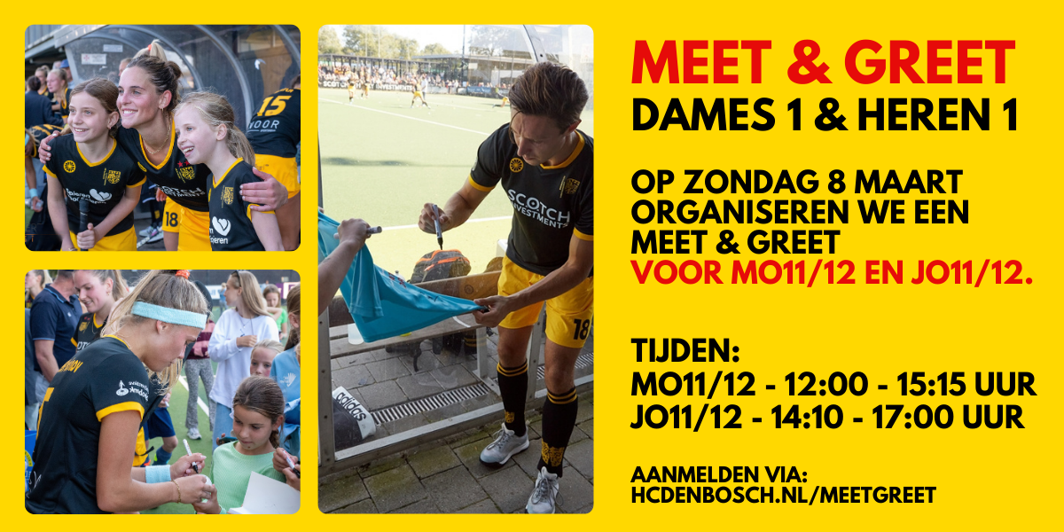 Goed nieuws voor alle MO11/MO12- en JO11/JO12-spelers. Zet je sticks klaar en trek je teamshirt aan, want op zondag 8 maart staat er weer een toffe inspiratiesessie op het programma! Na het enorme succes van vorig jaar krijgen jullie opnieuw een exclusieve Meet & Greet met de sterren van Dames 1 en Heren 1 van HC ’s-Hertogenbosch.